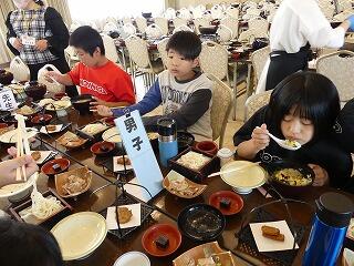 鹿児島の郷土料理「鶏飯」が出ました。昼食会場は宮崎県の小学生でごった返しでしたが、昼食はおいしくいただきました。