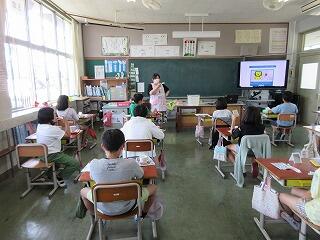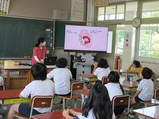 左の写真は、保健室の先生による歯みがき指導です。また、右の写真は、歯科衛生師の先生方をお招きし、歯みがき指導を行っていただいてる様子です。子ども達は興味深く学んでいました。