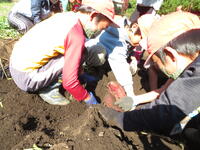 1・2年生で、6月に苗を植えてから5ヶ月が経過し、芋掘りを行いました。