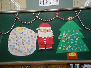 1・4・5年と2・3・6年に分かれ、本を読んだらサンタのふくろやプレゼントにシールを貼っていきます。