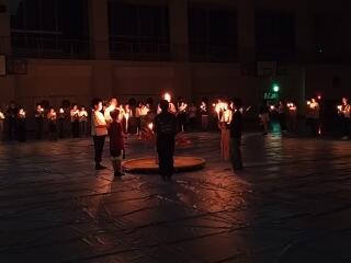 本日最後の活動。キャンドルファイヤーを行いました。