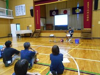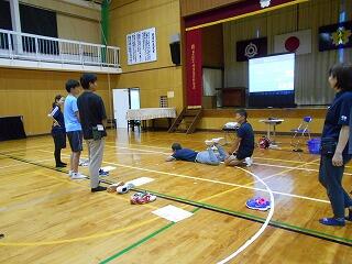 前半は体育館で講義を受け、後半はプールで実技を行いました。