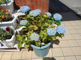 先日竹箒を寄贈してくださった吉富様より、あじさいの鉢植えをいただきました。