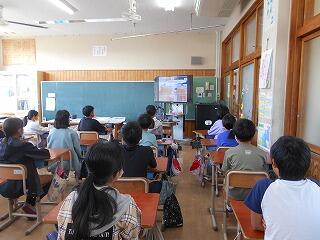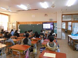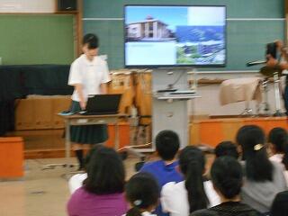 また、この日は、卒業生の那須さんが来校し、5・6年生に向けて、通っている五ヶ瀬中等教育学校の様子について、プレゼンテーションをしました。(5年生は、リモートで参加しました)