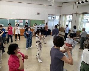 8月22日(火)の登校日、児童の下校後に職員で国富音頭の練習をしました。