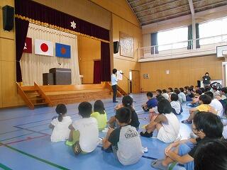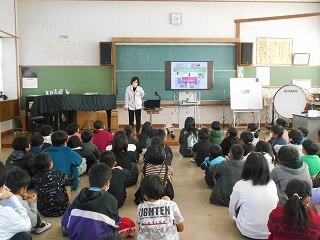 給食センターの森本先生をお招きし、給食委員会の児童が主催で行いました。