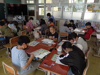 講師として、地域ボランティアの川越さんとお弟子さん3名をお招きして、丁寧に教えていただきました。