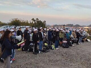 その後、アリーナくにとみに向けて40~50分かけてアリーナくにとみに遠足に行きました。