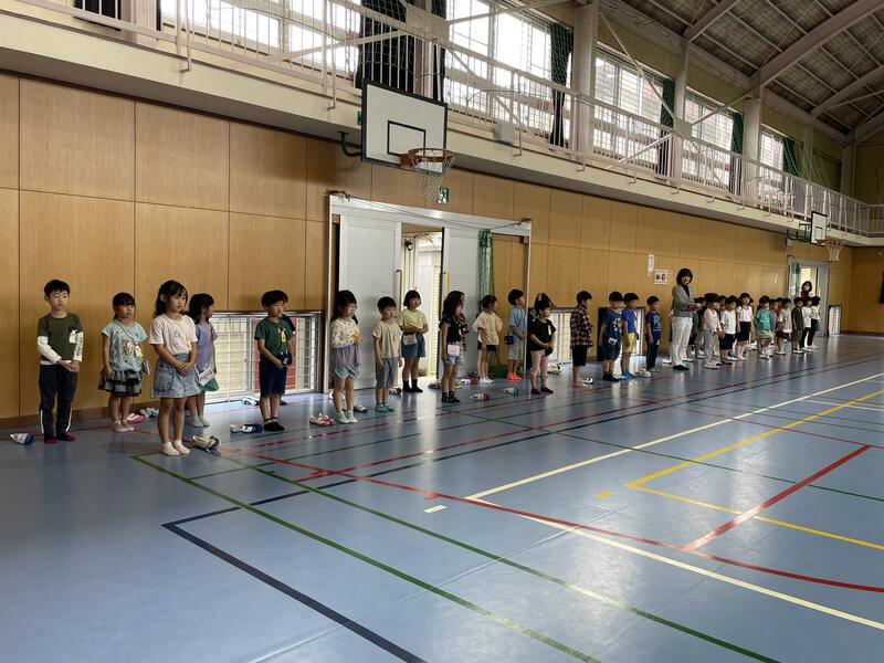 1年生が入学して2週間が過ぎようとしています。今朝は、1年生と2~6年生のお兄さんお姉さんたちとの対面式が体育館で行われました。ちょっとだけ緊張した面持ちで入場してきた1年生を、2~6年生が拍手と笑顔で迎えました。