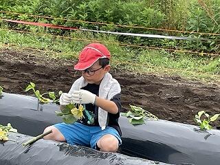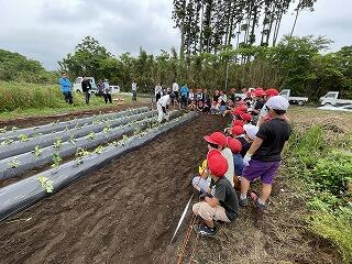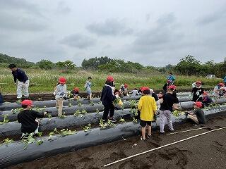 5月19日、3年生が芋苗植えをおこないました。当日までの畑の準備や苗の準備等、地域の方々、JA青年部のみなさま、地域コーディネーター中武明美さん、社会教育課の方々等、多くの方々にご協力していただきました。紅はるかと黄金せんがんです。大きく育つといいです。御協力いただいたみなさまに心から感謝いたします。