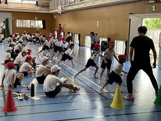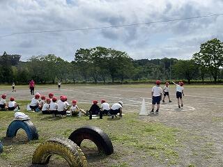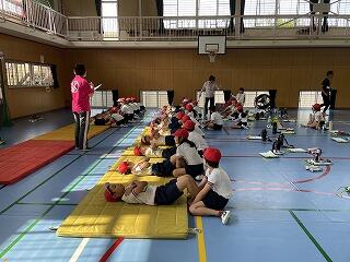 5月28日、全校一斉に体力テストを行いました。この日行った種目は、ソフトボール投げ、上体起こし、反復横跳び、立ち幅跳びの4種目です。1年生は6年生と、2年生は5年生と、3年生は4年生とペアを組み、お兄さんお姉さんに教えてもらいながら行いました。みんな一生懸命がんばりました。