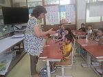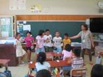 ALTのアビー先生と一緒に、挨拶と自己紹介のお勉強をしました。