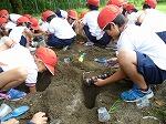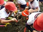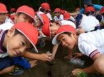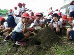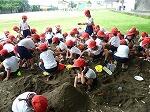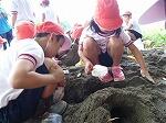 大きな山を作ったり、深いトンネルを作ったり・・・次の時間は体育で水泳なので、手足の汚れも気にせず、みんな思う存分砂遊びを楽しみました。