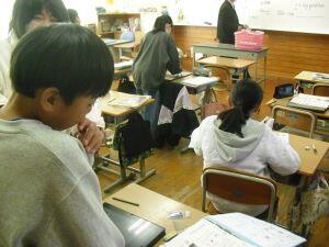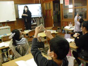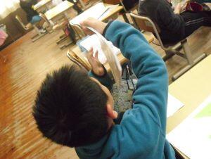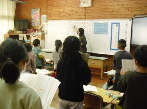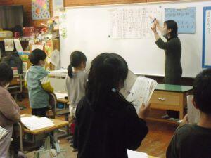 今日1年生は国語、2年生は算数の学習がありました。1年生は、1月1日(いちがつついたち)2月2日(にがつふつか)3月3日(さんがつみっか)など、特別な読み方をする日にちについて学習していました。みんなで一緒に読んだ後は、教科書を見ながら大きな声で練習をする1年生でした。2年生は、算数の学習で直角について学んでいました。紙を折り曲げて作った直角をつかって教科書の角が直角がどうかを確かめていました。