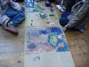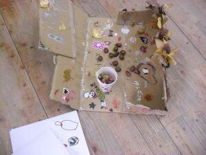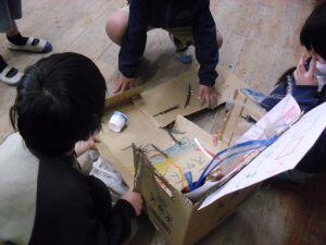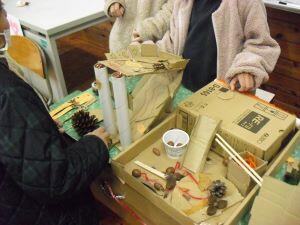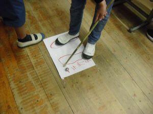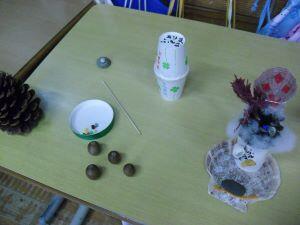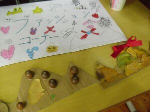 今日1年生は生活科で、「秋まつり」をみんなで楽しむ学習に取り組んでいました。自分たちで見つけた「どんぐり」や「落ち葉」などを使って、ゲームや賞品・飾りなどを作り、みんなでそのゲームを楽しんでいました。「どんぐり」ころがしゲームでは、「どんぐり」の道が上手に作られていて、ゴールまでの「どんぐり」の動きにワクワクしました。とても楽しい1年生の秋まつりでした。