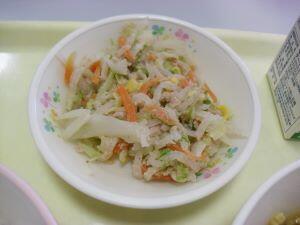 今日の献立は【親子丼・大根サラダ】でした。親子丼は鰹節と醤油・酒・みりんの味が鶏肉と卵にしっかりと染みこんでいて、ご飯がどんどんすすみました。大根サラダも新鮮でシャキシャキとして親子丼と相性が良く、とても美味しかったです。それでは、本日の綾町食材の生産者の方々を紹介します。米が有機米でアヤオーガニックワークスさん、にんじんが久木野地区の郡さん、大根が四枝地区の山口農園さん、長ネギが杢道地区の爰野さん、キャベツが揚町地区の西郷さんでした。今日も美味しい食材・美味しい調理ありがとうございました。