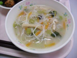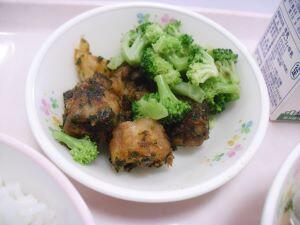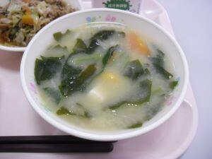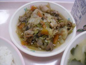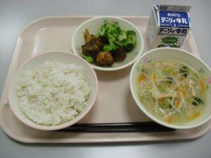 今日の献立は【麦ご飯・味噌にゅう麺・揚げ魚のたこ焼きソース絡め】でした。今回は給食時間の放送内容を紹介します。『今日は、奈良県の郷土料理「味噌にゅう麺」です。奈良県の三輪地方は、そうめんの発祥地と言われています。小麦粉の生産が盛んだったことから、約1200年以上前から「そうめん」を作っているそうです。そのそうめんを温かくして食べるものを「にゅうめん」と言います。今日は味噌味です。まだまだ肌寒い日が続くので、食べて体の中を温めましょう。』でした。それでは本日の綾町食材の生産者の方を紹介します。米が、有機米でアヤオーガニックワークスさん、にんじんと長ネギが杢道地区の爰野さん、小松菜が割付地区の福重さん、しめじが古屋地区の宮崎産業さんでした。今日も美味しい食材、美味しい調理ありがとうございました。