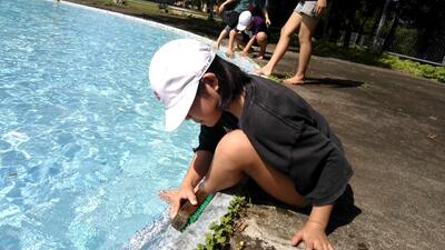 委員会の時間にも、ボランティアをやっている生徒を見つけました。この日は、体育員会がプールをみがいてました。