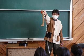 綾町の猟友会会長をされている小西俊一さんに学校へお越しいただき、
