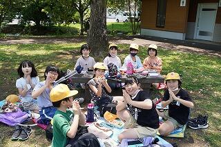 学級の友だちとおいしいお弁当を食べて、至福のひと時を過ごしていました。