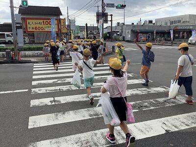 暑い中、子どもたちはとても元気に散歩気分で歩いていました。
