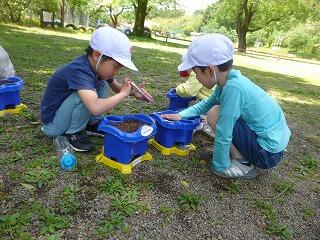 5連休明けに、あさがおの種を植えました。