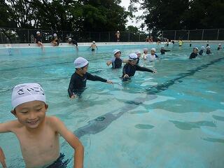 大きいプールにびっくりしながら、小学校での初めてのプールが始まりました。みんな気持ちよさそうにプールに入っていました!