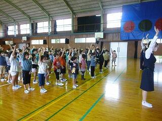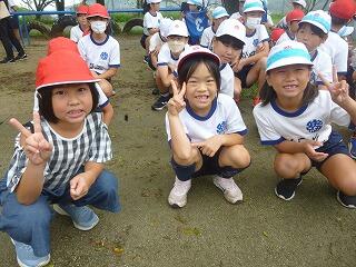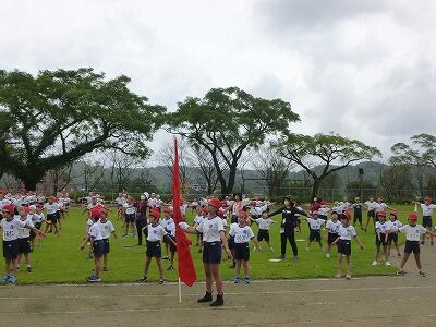 1年生から6年生まで全員そろった全校体育。待つことが多くて大変だったけど、1年生もよく頑張りました!