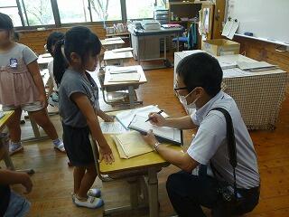 反復横跳び、立ち幅跳び、上体起こしを6年生に手伝ってもらいながらしました。