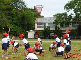 運動会の予行練習がありました。たくさん玉が入ったのは、何団だったでしょう?みんな一生懸命に頑張りました!!
