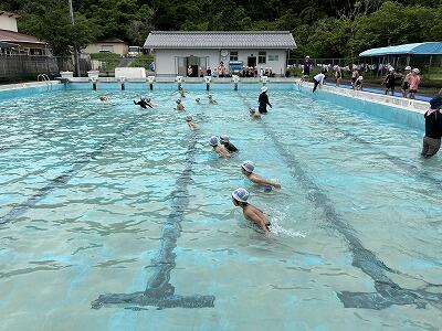 大きいプールにびっくりしながら、小学校での初めてのプールが始まりました。みんな気持ちよさそうにプールに入っていました!
