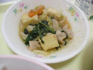 今日の献立は【麦ご飯・鳥ごぼう汁・炒り豆腐】でした。炒り豆腐は、ご飯にかけて「炒り豆腐丼」としてもとても美味しかったです。鶏ごぼう汁は出汁がしっかりと出ていて、美味しく体が温まる汁物でした。今日も美味しい給食ありがとうございます。それでは、本日の綾町食材の生産者の方々を紹介します。米が有機米でアヤオーガニックワークスさん、小松菜が割付地区の福重さん、にんじんが久木野地区の郡さん、長ネギが杢道地区の爰野さんでした。今日も美味しい食材・美味しい調理ありがとうございました。