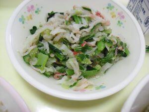 今日の献立は【麦ご飯・トック・豚キムチ】でした。今日は韓国料理でした。トックという韓国のお餅の入ったスープと豚キムチの組み合わせは、ご飯がどんどん進む美味しい組み合わせでした。それでは、本日の綾町食材の生産者の方々を紹介します。キャベツが揚町地区の西郷さん、小松菜が割付地区の福重さん、エリンギが古屋地区の宮崎産業さんでした。今日も美味しい食材・美味しい調理ありがとうございました。