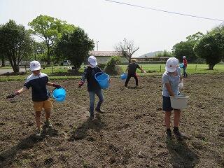 5年生は、綾町で有名な有機農業を体験するために、米作りと野菜作りに挑戦することにしました。
