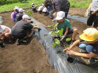 自分たちで植えた野菜がどんどん育っていく様子を子どもたちはうれしそうにみています。また、畑に行くたびに収穫はまだかと楽しみにしている子どももいました。収穫する日が楽しみですね。