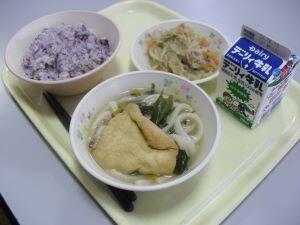 今日6日(木)の給食献立は、【ゆかりご飯・きつねうどん・もやしとキャベツの和え物】でした。「ゆかりご飯」と「きつねうどん」の程よい薄味と、キャベツの和え物のしっかりした味付けが、とても相性が良く美味しかったです。今日も美味しい給食ありがとうございます。それでは、今日も給食の【ふるさと綾産食材】の生産者の方を紹介します。米は揚町地区のJA綾町さん、にんじんは杢道地区の方、キャベツは揚町地区の方です。今日も美味しい食材の提供ありがとうございます。そして美味しい調理ありがとうございます。