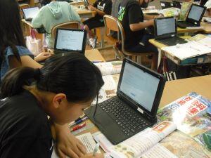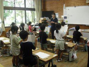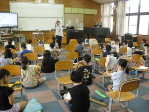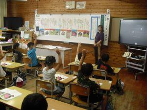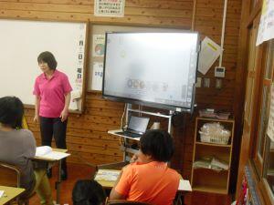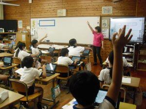 今日1年生は、体育の学習がありました。急な雨のため教室でラジオ体操の練習でしたが、腕や足の動かし方を確かめながら笑顔で練習する1年生でした。3年生は音楽の時間に「ドレミの歌」を動作をつけながら楽しそうに歌っていました。きれいな発声をする3年生でした。6年生は理科の学習で、友達の自由研究を見た感想をグーグルフォームを使って入力していました。夏休みの力作をお互いに見合い参考にする6年生でした。