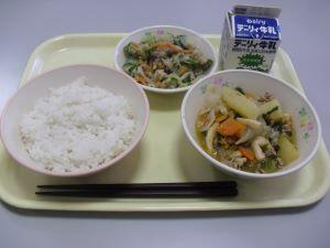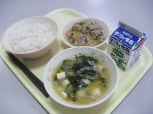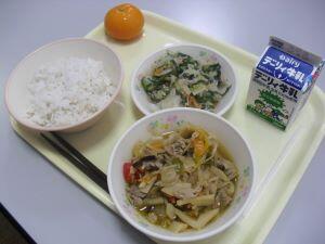 9月3日(火)の献立は【ミルクパン・なすのミートスパゲティ・ツナサラダ】9月4日(水)の献立は【麦ご飯・かぼちゃの味噌汁・アジのカレー揚げ・ミニトマト】9月5日(木)本日の献立は【麦ご飯・ふりかけ・里芋のそぼろ煮・茎わかめの酢の物】でした。3日間とも大満足の給食でした。美味しい給食いつもありがとうございます。それでは、3日間のふるさと【綾】産食材の生産者の方々を紹介します。エリンギは古屋地区の宮崎産業さん、米は揚町地区のJA綾町さん、かぼちゃは二反野地区の山口さん、にらは中堂地区のほとくり会さん、きゅうりは麓地区の安永さん、こんにゃくは宮原地区の大山食品さんです。美味しい給食食材ありがとうございます。これからもどうぞよろしくお願いいたします。