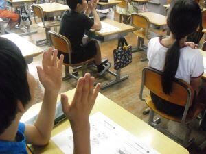 今日1年生は算数の学習で、いろいろな形を仲間分けすることに取り組んでいまいした。ブラックボックスの中から、手触りだけで丸いところのある形を探し当てていました。とても楽しそうに探し当てる1年生の【あやっ子】でした。3年生は外国語活動で英語の数字を聞き取るゲームに取り組んでいました。キーワードが「10」で、「10」の英語が聞こえたら反応するゲームに楽しそうに取り組む3年生の【あやっ子】でした。4年生は体育の学習で、鉄棒運動と高跳びの運動に取り組んでいました。鉄棒に足をかけてぶら下がったり、高跳びの高さを変えて挑戦したりしていました。元気に運動する4年生の【あやっ子】でした。