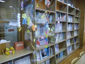 今日の校舎内の様子です。多目的フロアと図書室に笹竹と短冊で七夕飾りがしてあります。短冊には、あやっ子の願いがたくさん書かれてます。みんなの願いが叶いますように!!