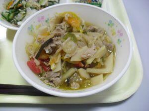 今日の給食献立は、【麦ご飯・中華スープ・マーボー春雨】でした。中華スープはガラスープと醤油をベースにした味で、にんじん・小松菜・えのきたけ・ねぎと野菜がたっぷり入ったスープでした。マーボー春雨はニラが入った美味しい味付けでスープや麦ご飯との相性抜群でした。今日も美味しい給食ありがとうございます。それでは、6月も給食にたっぷり入っている【ふるさと綾産食材】の生産者の方を紹介します。米は揚町地区のJA綾町さん、ニラは中堂地区の方、にんじんは杢道地区の方、小松菜は割付地区の方、えのきたけは古屋地区の方です。美味しい食材の提供、ありがとうございます。そして、美味しい調理ありがとうございます。6月もどうぞよろしくお願いいたします。