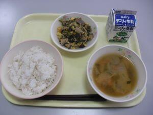今日の給食献立は、【麦ご飯・キムチ汁・チャプチェ】でした。「キムチ味の汁物」と「チャプチェ(野菜と春雨の炒め物)」は韓国料理のメニューで、「麦ご飯」を何杯でもおかわりできそうな美味しい味付けでした。今日も美味しい給食ありがとうございました。それでは、今日も、給食の【ふるさと綾産食材】の生産者の方々を紹介します。米は揚町地区のJA綾町さん、「にんじん」と「ごぼう」は杢道地区の方、小松菜は割付地区の方、ニラは宮原地区の方、こんにゃくは宮原地区の方です。今日も美味しい食材の提供ありがとうございます。そして美味しい調理ありがとうございます。今週1週間もとても美味しい給食でした。給食に関係する全ての皆様に感謝申し上げます。来週もどうぞよろしくお願いいたします。