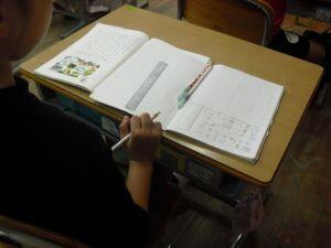 今日2年生と5年生は算数の学習がありました。2年生は、たし算のひっ算(2桁+2桁:繰り上がりあり)の復習をしていました。算数ミニテストで自分の今の力を試す2年生でした。5年生は算数の学習で、倍数について学んでいました。「倍数」という言葉と、「0」は倍数に入れないということを学んで問題に挑戦する5年生でした。
