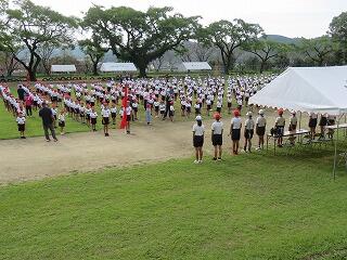 開閉開式での立つ位置を確認したりラジオ体操の練習をしたりしました。