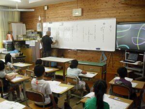今日4年生と5年生は算数の学習がありました。4年生は2桁÷2桁の筆算の仕方を学ぶために、まず、電子黒板の絵図を使って視覚的に割り算をした後、この時間の「めあて」を自分たちで考え発表していました。5年生は紙を折った回数と長方形の数の関係について表にまとめた後、長方形の数が2・4・8・16と2倍になって増えているという決まりを見つけていました。順に増える数を表を使って調べる5年生でした。