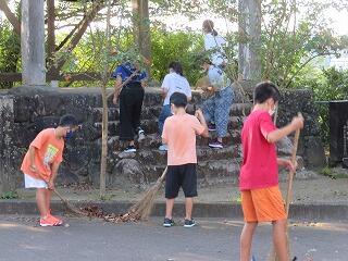 写真は、鐘つきの仕方を6年生が5年生に伝えている場面です。6年生の説明を熱心に聞いている5年生でした。2日間お世話になります。よろしくお願いします。