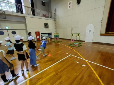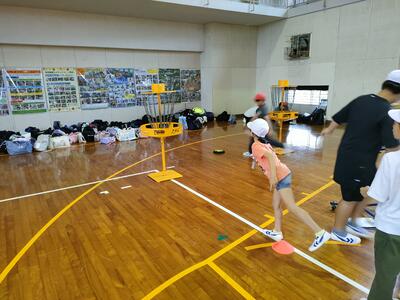 雨天のため潮風追跡ハイキングはできず、室内オリンピックをしました。5つの種目で点数を競いました。