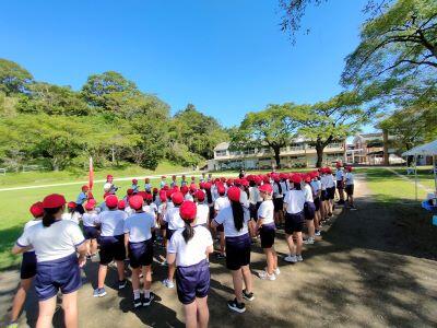 本日結団式をしました。企画委員会と運動会実行委員の子が数日前から準備をし、今日はスローガン発表と進行をしてくれました。オンラインでの結団式でしたが、拍手や返事がしっかりとできていました。