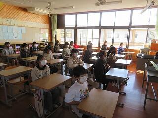 始業式は放送で実施しました。6年生の作文発表では代表児童が「卒業までの残された日々を大事にしたい。下級生に6年生としてのお土産を残したい。みんなと仲良く遊びたい。」など、自分の思いを丁寧に伝えてくれました。共感する部分があったのでしょう。うなずきながら聞いている人がたくさんいました。