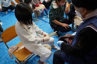 3年生は、高齢者の方とのふれあい箸作りを行いました。